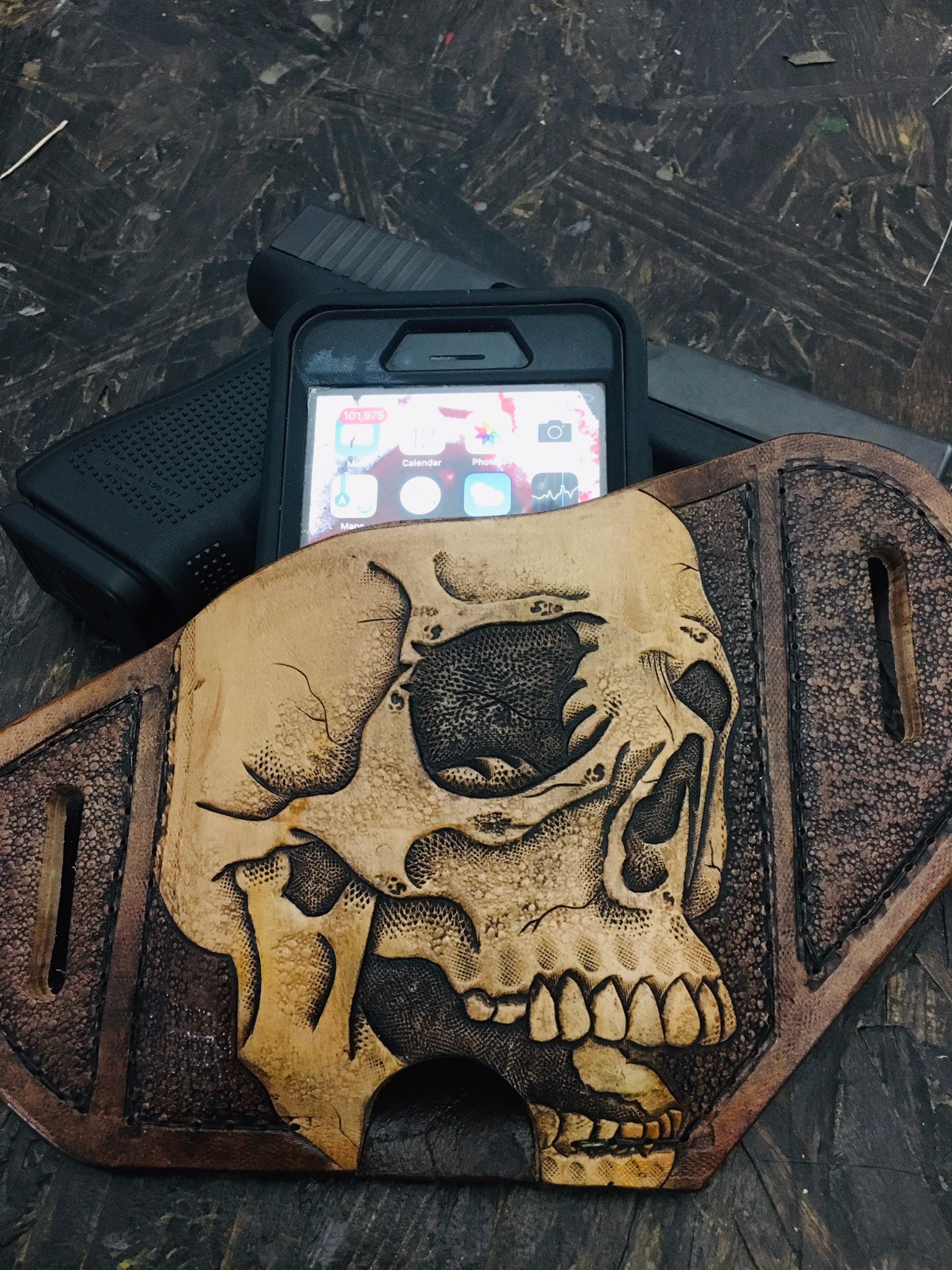 Cell phoneî€ Biker Case Holster Sheridan floral Hand Tooled, Hand Carved Leatherî€ tooling ...